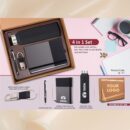 Dual tone gift set with bottle, notebook, pen and keychain for modern appeal