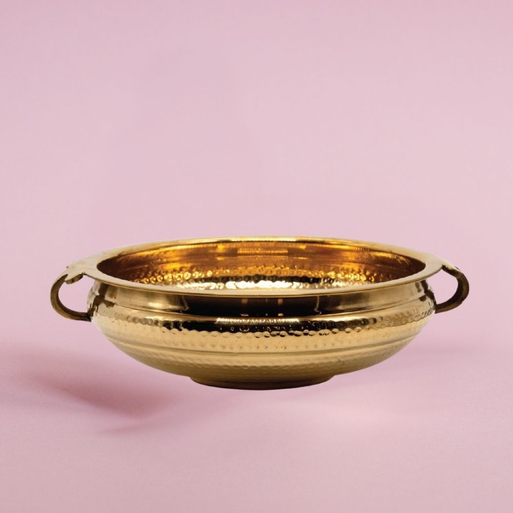 A textured hammered finish urli crafted from brass and copper offering a rich artisanal look perfect for home decor and gifting