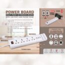 Heavy-duty multi point extension board with multiple universal sockets and USB ports,includes built-in phone stand for convenience,equipped with safety features such as overload,overvoltage,and short circuit protection,durable design with long power cord ideal for home and office use
