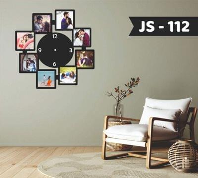 Enhance your wall décor with the Personalized Photo Frame Wall Clock (JS-112), a perfect blend of memories and functionality. This stylish clock features multiple photo frames arranged around a central clock dial, allowing you to showcase your favorite moments beautifully. Ideal for home décor and gifting, it adds a modern and emotional touch to any living space.